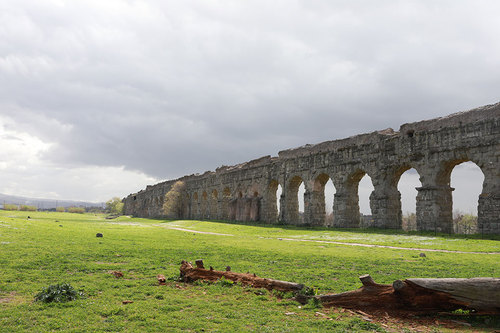 △罗马第一条水道——阿庇亚水道,修建于公元前312年。当时每天为罗马城供水73000立方米。(央视记者拍摄)