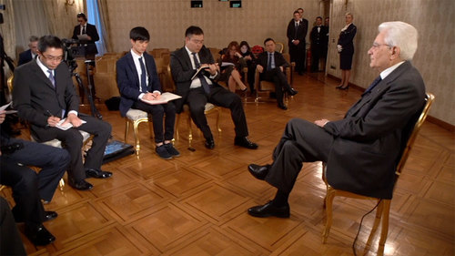 △3月19日,意大利总统马塔雷拉接受中央广播电视总台等中国媒体的联合采访。(央视记者李耀洋提供)
