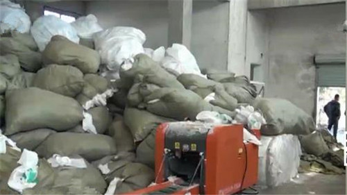 经了解此前已有374吨这样的固体废物走私进境,运输到江苏新沂市佃户村的一处工厂内再次进行分拣。这里生产环境简单,缺乏基本的卫生条件,所谓“成人纸尿裤”全部靠人工分拣再根据不同客户的需求进行包装,直接加工成“益家逸”“安康”“好相传”“康保?!钡绕放疲缓笤诠诘缟唐教ㄒ匀虏返男问焦鄄⑼ü斓莘⒌饺鞯氐目突种?。