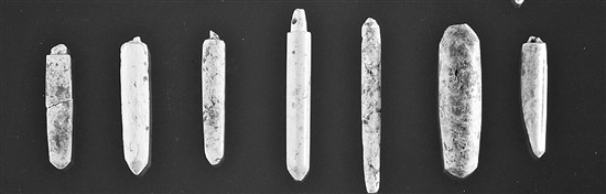 这些玉料,是良渚人在做玉器的时候,从上面扔下去的。而他的工作场所就在台子上。堆积中发现的玉器成品、半成品、残件200多件,基本上只有两种产品:玉锥形器和玉管,还有一些零星的小坠子。
