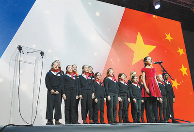 “让我们荡起双桨,小船儿推开波浪……”伴随着优美的旋律,一群法国学生用中文在中法友好故事会上唱起《让我们荡起双桨》。字正腔圆的歌声拉近了相距万里的中法两国。
