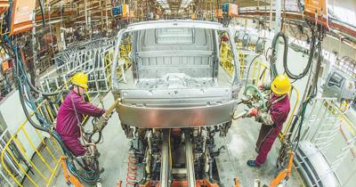 3月31日,山东省青州市的江淮汽车山东分公司冲焊车间内,工人正忙碌。