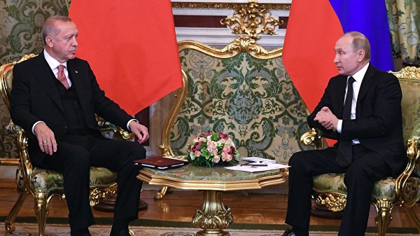 图说:俄罗斯总统普京和土耳其总统埃尔多安