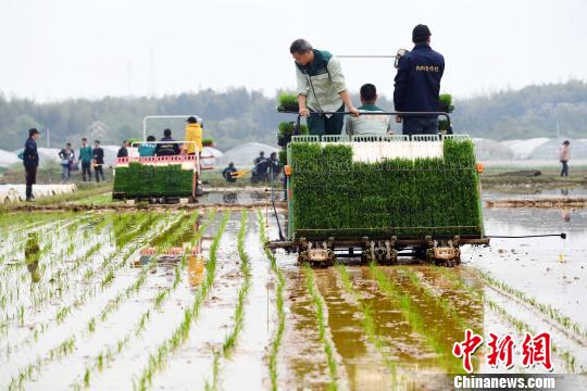 资料图:一名种粮大户在田间体验高速插秧机的作业情况?!≈芰?摄