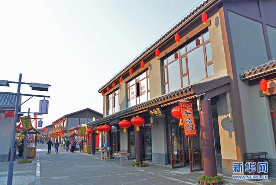西柏坡文旅小镇以旅游休闲商业形态为主,建筑为中式风格。新华网 王立鹏摄