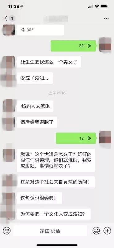 网传的事件当事人聊天截图中,也显示在“大闹一通”后,终究还是选择退款方案。