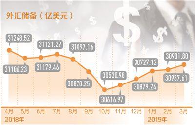 国家外汇管理局最近公布的数据显示,截至2019年3月末,我国外汇储备规模为30988亿美元,较2月末上升86亿美元,升幅为0.3%,这是外汇储备连续第五个月上升。