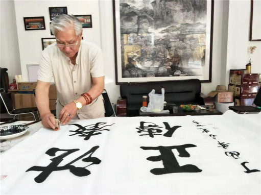 史世奇正在写书法
