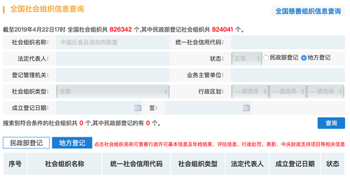 “反食品添加剂联盟”未在民政部登记