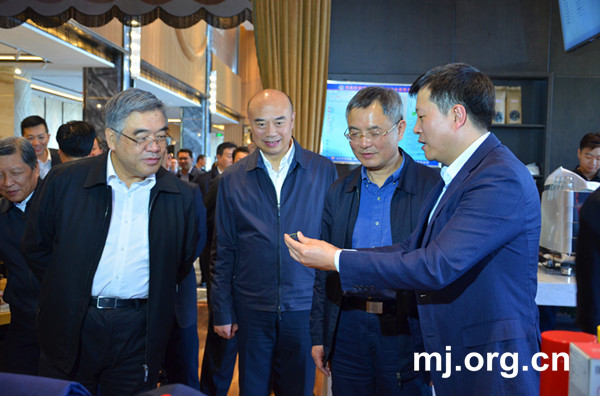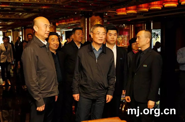 4月16日下午,民进中央主席蔡达峰率民进中央调研组在西安开展“深化‘放管服’改革,激发微观主体活力”实地调研。图为调研组一行在陕西亮宝楼实业有限公司调研。