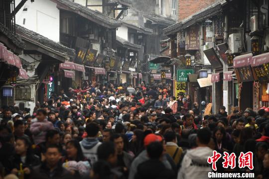 资料图为游客挤满了古镇街道?!〕鲁∩?nbsp;