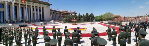 △欢迎仪式前,人民大会堂东门外全景。(央视记者杨立峰拍摄)