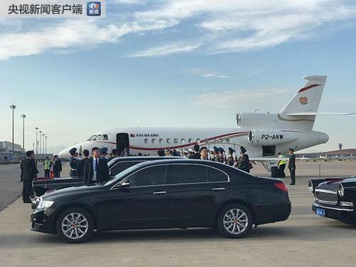 △巴布亚新几内亚总理奥尼尔是25日习近平主席最后一位会见的领导人。当天下午17点许,奥尼尔乘坐的专机抵达首都机场。(央视记者魏帮军拍摄)