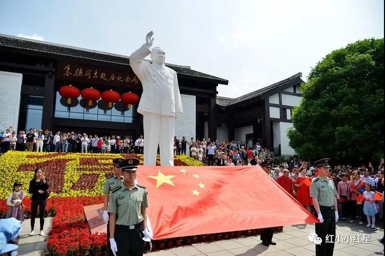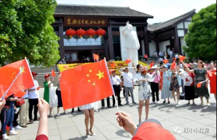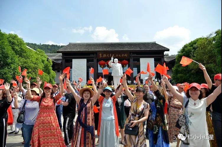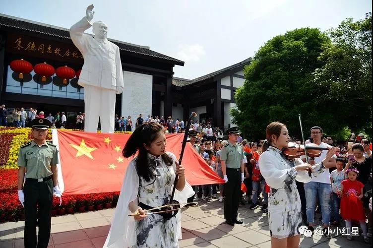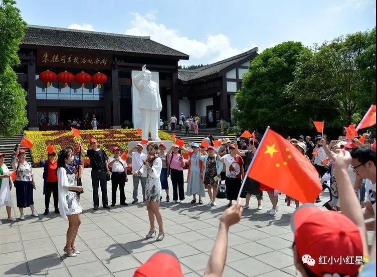 上午10时许,朱德故居纪念馆广场广场,随着经典歌曲《我和我的祖国》唱响,前来旅游的游客情绪纷纷被调动,一时间众人挥舞手中的小国旗,放声歌唱《我和我的祖国》。优美的歌声和动人的旋律在朱德故里上空久久回荡。