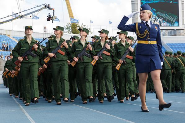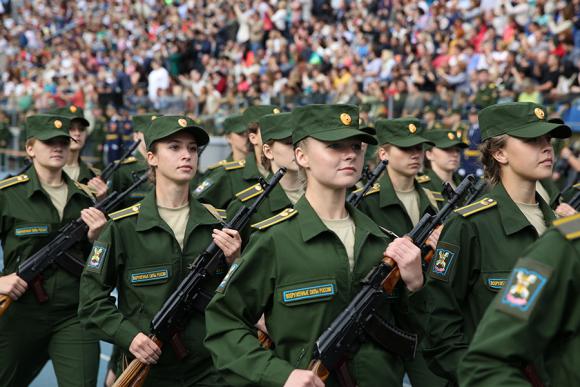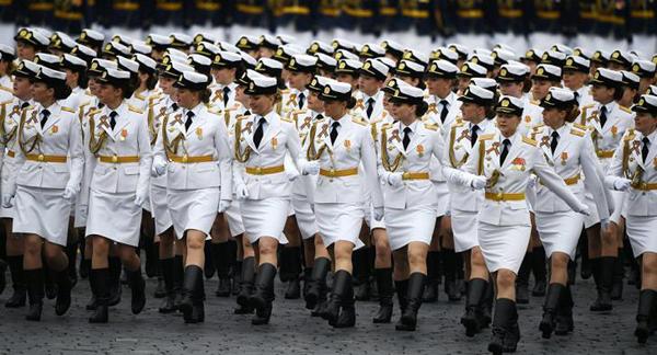 参加检阅的女兵主要来自俄罗斯国防部军事大学、沃尔斯基物质保障军事学院、布琼尼军事通讯学院、加加林空军学院、莫扎伊斯基军事航天学院等军事院校。(央视记者 顾鑫)
