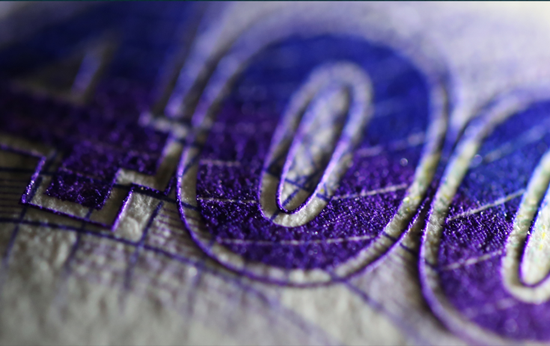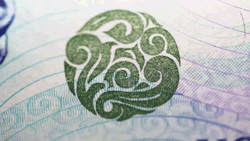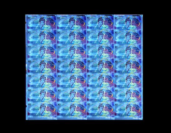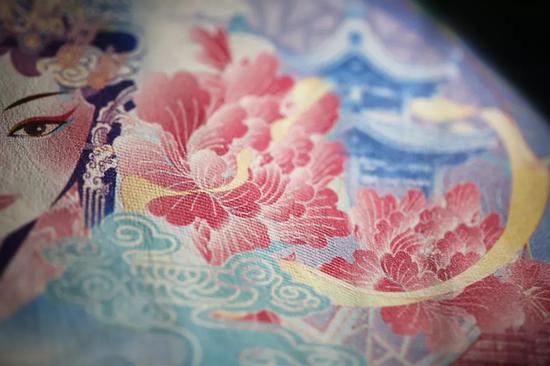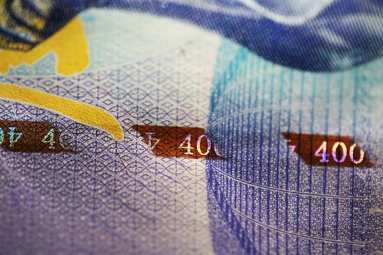 人物右下角祥云采用光变凹印油墨印制,