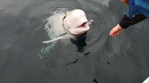 根据此前媒体报道,挪威小渔村因加附近海域的渔民近日报告说,一只套着奇怪系带的白鲸在骚扰他们的渔船。渔民乔尔?黑斯腾告诉挪威广播公司:“当我们准备撒网时,看到一只鲸鱼在两条船之间游动。它向我们游来,当它靠近时,我们看到它身上绑着某种系带?!庇婷衩潜硎?,这只鲸鱼很温顺,看上去已经习惯了人类。挪威海洋专家当时怀疑,他们猜测这只鲸鱼可能是俄罗斯军方训练出来的。