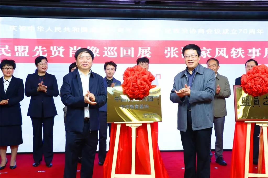 张平、陈进林为“民盟传统教育基地”揭牌。