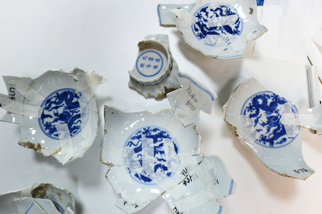 近期,圆明园启动“修复1860”,将持续修复圆明园出土的文物。现有6件精品瓷器正在修复中,分别是1件青釉鼻烟壶、2件青花八宝万福如意瓷砖、1件康熙青花龙纹碗、1件康熙红釉碗以及1件青花缠枝莲纹瓷绣墩。这6件瓷器均破损缺失严重,其中鼻烟壶断裂有冲线;两件瓷砖断裂,釉面多处冲线;瓷碗严重破碎,已从280多块碎片中查找,并拼出大致结构;红釉碗破碎并有多处缺损;绣墩碎成130余块碎片并有多处残缺。文物修复既要保持文物历史真实性,同时还要体现其美学价值,文物修复专家经过分拣、清理、粘接、补配、找平、做色、绘纹饰、上釉、做效果、拍照归档、形成工作日志及评审等步骤,将破碎的文物修复完好。6件文物成品将在圆明园展出,同时进行3D扫描,并收入到圆明园线上数字博物馆,游客将来可在圆明园官方微信公众号上观看。