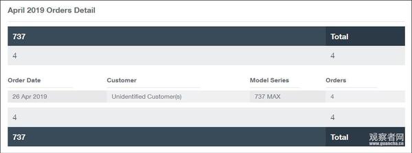 需要指出的是,虽然账面上记录了波音在4月26日签出4架737的订单,但该销售行为早已发生。CNN新闻网指出,波音上季度将4架737卖给旗下金融公司波音资本(Boeing Captial)。而4月份,4架早已出售的飞机,被转移至一家第三方租赁公司下。而波音在报告中显示后者为“身份不明的顾客”。