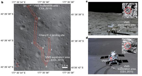 北京时间5月16日凌晨,国际顶级学术期刊《自然》(Nature)在线发表了一篇来自中国科学家的成果:中国的嫦娥四号月球探测器在月球背面的冯·卡门陨石坑(Von Kármán crater)着陆,并部署了玉兔二号月球车对南极-艾托肯盆地(South Pole-Aitken)进行探测,科学家利用可视-近红外成像光谱仪(VINS)的光谱初始观测结果推断出,月球表面存在的低钙辉石和橄榄石矿物可能起源于月球地幔。这也是人类首份月球背面幔源物质初步证据。