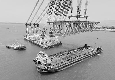 平潭海峡公铁两用大桥全桥非通航孔钢桁梁日前全部架设完成。新华社发