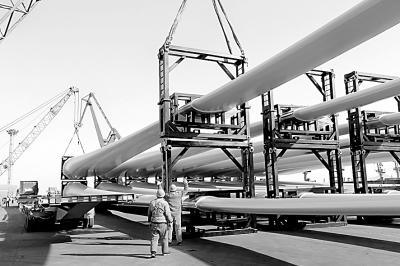 大批成套风电设备在江苏省连云港港口集港准备出口澳大利亚。王健民摄/光明图片