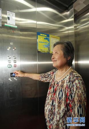 上?;∏晃痪用翊畛思幼暗牡缣荩?018年6月26日摄)。2018年,上海市静安区静安寺街道美丽园居民区里的华怡小区3幢6层居民楼加装电梯工程全部完工,并交付使用。新华社记者 胥晓璇 摄