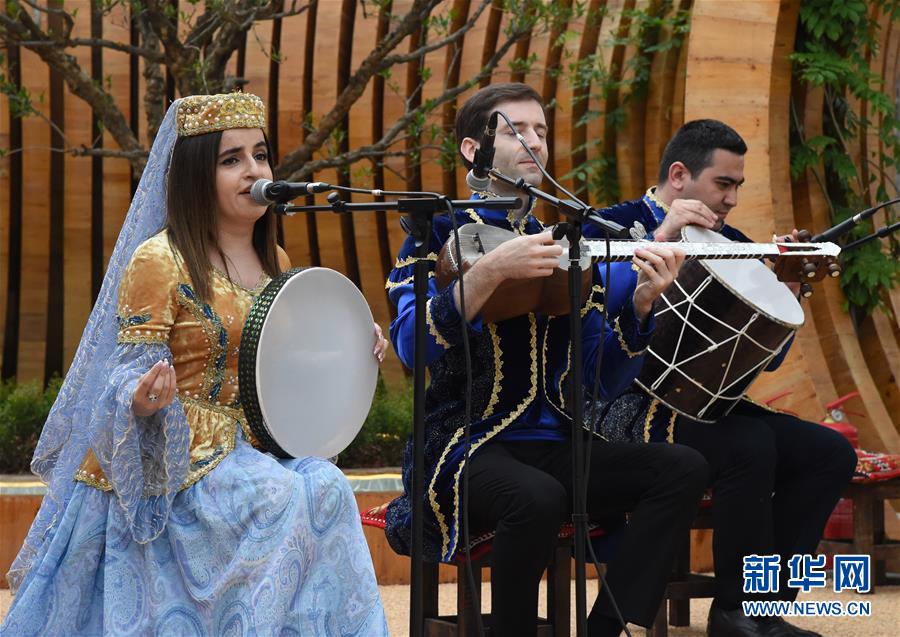5月26日,演员在“阿塞拜疆国家日”活动中表演。 当日,2019年中国北京世界园艺博览会“阿塞拜疆国家日”活动在北京世园会园区举行。 新华社发(任超摄)