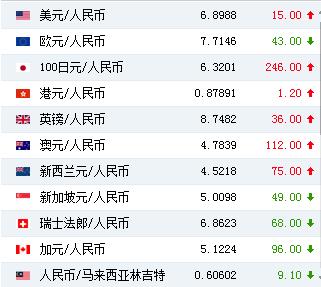 中国人民银行授权中国外汇交易中心公布,2019年5月29日银行间外汇市场人民币汇率中间价为:1美元对人民币6.8988元,1欧元对人民币7.7146元,100日元对人民币6.3201元,1港元对人民币0.87891元,1英镑对人民币8.7482元,1澳大利亚元对人民币4.7839元,1新西兰元对人民币4.5218元,1新加坡元对人民币5.0098元,1瑞士法郎对人民币6.8623元,1加拿大元对人民币5.1224元,人民币1元对0.60602马来西亚林吉特,人民币1元对9.3604俄罗斯卢布,人民币1元对2.1291南非兰特,人民币1元对172.01韩元,人民币1元对0.53146阿联酋迪拉姆,人民币1元对0.54265沙特里亚尔,人民币1元对42.3868匈牙利福林,人民币1元对0.55684波兰兹罗提,人民币1元对0.9676丹麦克朗,人民币1元对1.3871瑞典克朗,人民币1元对1.2613挪威克朗,人民币1元对0.87281土耳其里拉,人民币1元对2.7761墨西哥比索,人民币1元对4.6111泰铢。