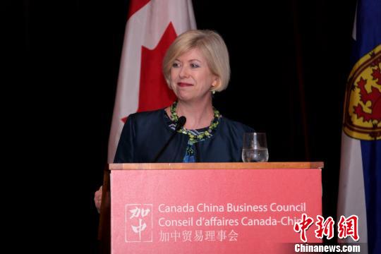 加中贸易理事会(CCBC)于当地时间5月29日晚在加拿大哈利法克斯举行大西洋省分会成立仪式。图为CCBC执行理事高诗如(Sarah Kutulakos)致辞?!∮嗳鸲?摄
