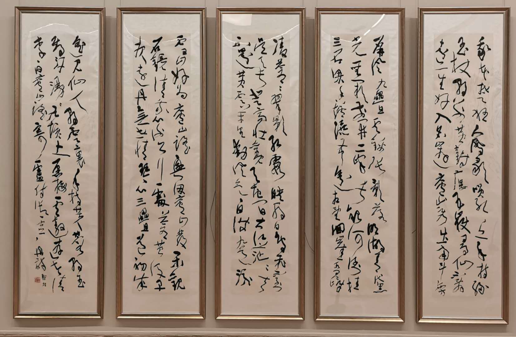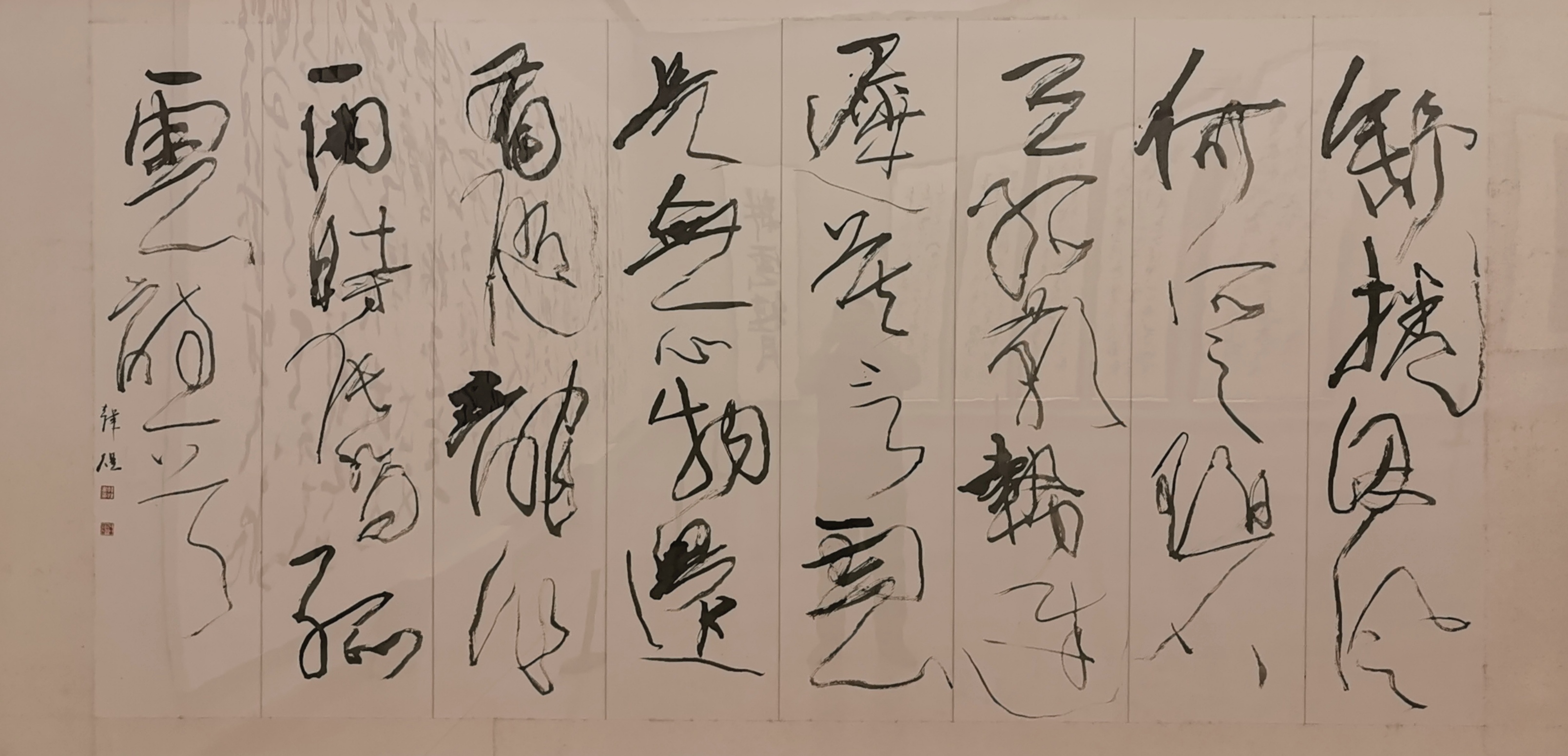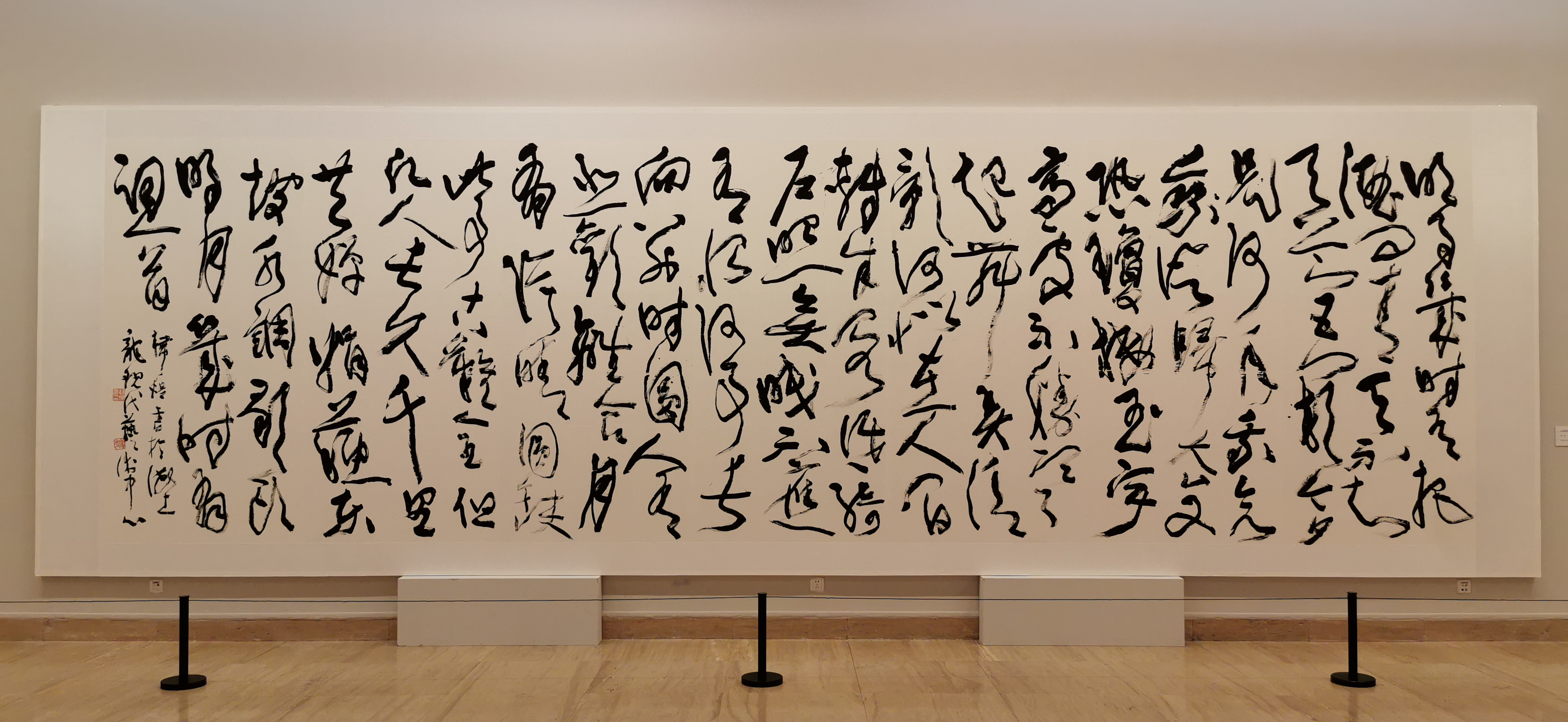 据了解,此次展览共展出韩煜书法创作72件,共展示60幅。这些作品都是书法家韩煜的近期创作,最大作品宽9米多,高2.8米以上。他以草书、行书为主,同时还带来了他所独创的墨韵书法,引人瞩目。