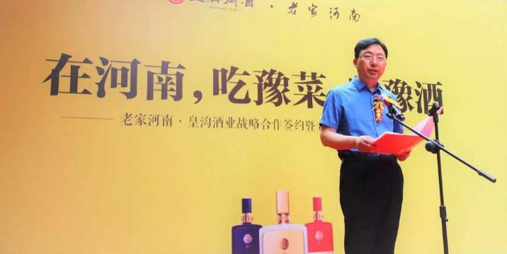 潘铭在致辞中表示,老家河南餐饮管理有限公司与河南皇沟酒业有限责任公司达成战略合作,从此喜结连理,携手并肩为豫菜发展、豫酒振兴作出积极的更大的贡献。同样就与河南皇沟酒业有限公司达成了战略合作,将重点宣传推介有着鲜明特质的皇沟御酒。