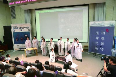 在此次活动上,北京师范大学实验中学丰台学校吟诵团、北京联合大学德馨吟诵社等以吟诵、舞蹈、演奏的形式艺术化地呈现了《橘颂》《梦兰亭》等经典古诗文;古琴演奏者张罡熙、吴寒先后演奏了名曲《离骚》和《山居吟》,琵琶演奏家吴玉霞为观众开展了名为《琵琶音乐赏析》的主题演讲……
