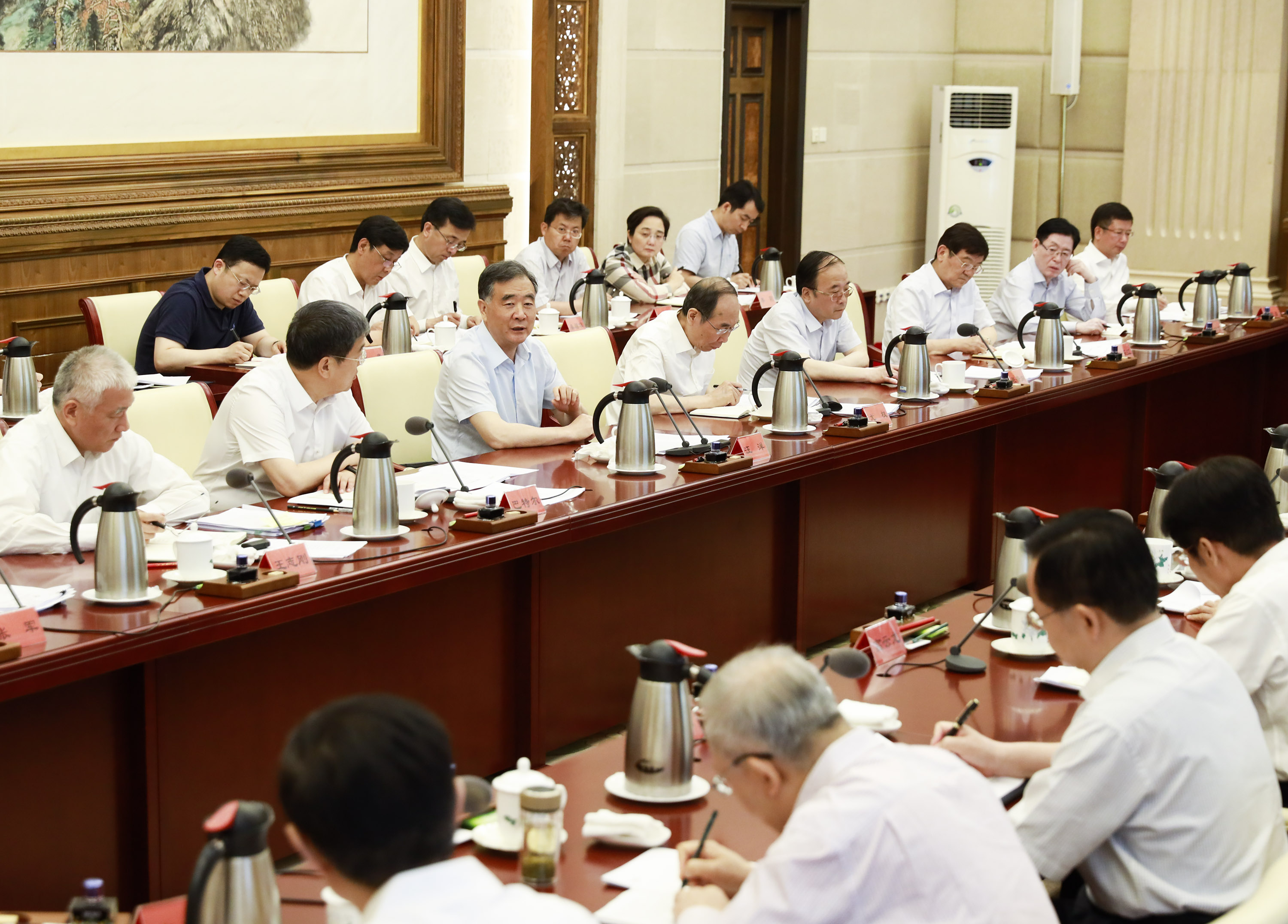 6月10日,中共中央政治局常委、全国政协主席汪洋在北京与有关民主党派中央、全国工商联负责人和无党派人士代表座谈,就相关党派团体开展的“创新驱动引领高质量发展”调研成果进行协商。新华社记者 黄敬文 摄