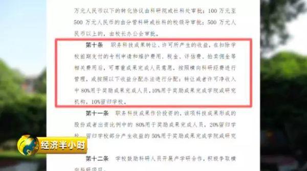 为了鼓励科技成果转化,湖南大学于2016年5月出台了《湖南大学促进科技成果转化实施办法(试行)》,明确规定,可以通过许可、转让、作价投资等方式进行科技成果转化。同时,对于转让产生的收益,实行“811”制度,即专利转让、许可扣除前期费用的收益,以及作价投资形成的股份,80%奖励给发明人团队,10%归学院或机构,10%归学校。