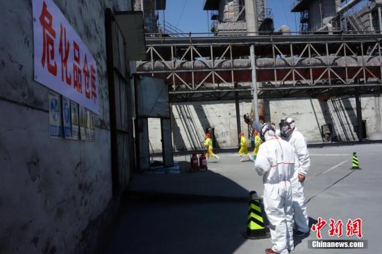资料图:环保部门针对危险化学品环境污染事故的专项应急演练。中新社发 孙睿 摄