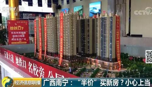 在广西南宁的一个房地产销售中心,销售人员介绍,他们这个项目占地36亩,规划了8栋最高32层的住宅楼,其中1400多套住宅正在以诱人的低价热销?! ?/p>