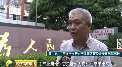 广西南宁市新兴产业园区管委会安置部副部长 黄忠:产业用地只能作为商业业态来出现,比如商场、写字楼、酒店等。