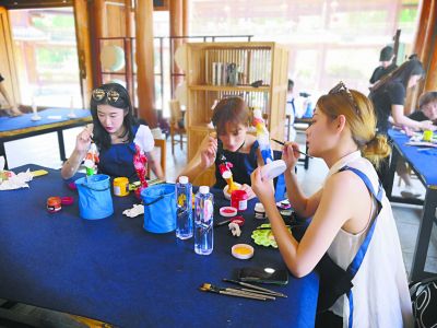 游客在博物馆参与刘三姐对歌公仔上色体验活动 郭凯倩 摄