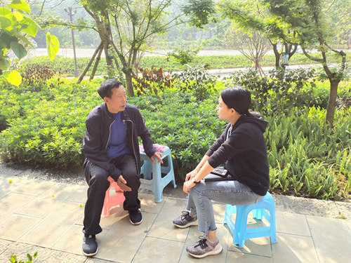 5月16日,易地扶贫搬迁安置户王德明(左)接受采访。于培龙/摄
