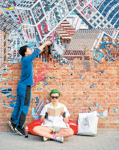“长城、故宫、798”是北京必去的三大景点,这是朋友知道我要来北京时跟我说的。我去的那天是周末,798里正在举办大型活动,吸引了很多人前来。几乎每一个展馆都挤满了观众,每一处有特色的景观或雕塑前,都有精心打扮的人拍照。除了展馆和精品店,798还有不少艺术工坊,游客可以亲自动手制作工艺品。整个园区本身就是一件宏伟壮丽的艺术品,旧厂房与新派建筑融合,不少建筑物上有着色彩斑斓的涂鸦,为园区增添了活力。