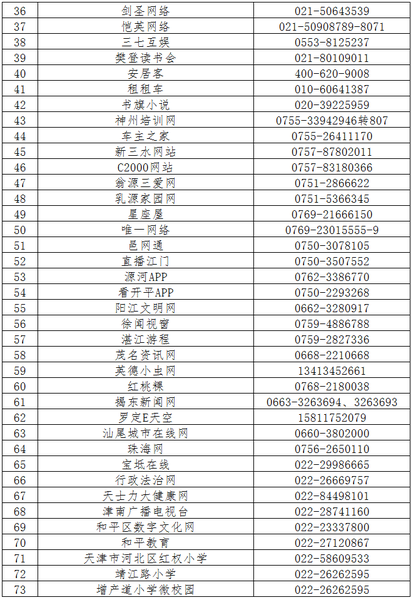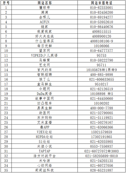 据了解,此次公布举报受理方式的网站,既包括地方政府政务网站、地方新闻门户网站、商业网站,又包括社区、论坛、微信公众号等互动平台,以及直播、游戏、APP应用程序等互联网应用平台,内容涉及生活服务、房屋租赁买卖、网约车、求职招聘、教育培训、旅游出行、小说文学、医疗服务等多个方面。其中,滴滴出行、首汽约车、去哪儿、途牛旅游等网民使用率较高的出行、旅游类应用平台,链家地产、我爱我家等房屋交易类应用平台,盒马鲜生、饿了么等生活服务类应用平台在公布名单之列。
