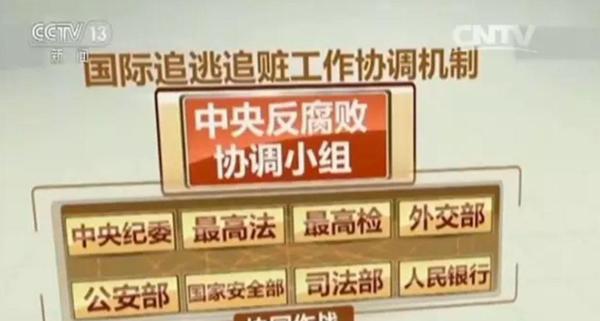 中央反腐败协调小组建立追逃追赃工作协调机制,设立国际追逃追赃工作办公室,简称中央追逃办。由中央纪委、最高法、最高检、外交部、公安部、国家安全部、司法部和人民银行等8家成员单位组成,将分散在各部门之间的追逃追赃力量集中起来,开启了我国追逃追赃的新阶段。