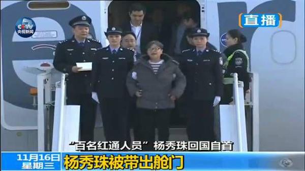 “百名红通人员”头号嫌犯、浙江省建设厅原副厅长杨秀珠从美国回国投案。