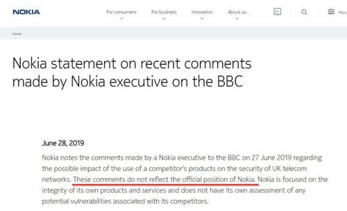 诺基亚高管支持美国打压华为 诺基亚改报道忙撇清