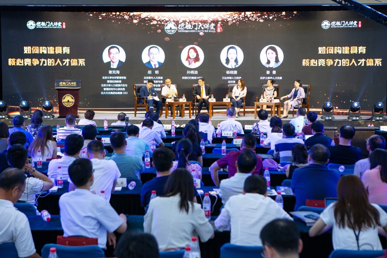 北大方正集团总裁谢克海,北京青年人力资源服务商会首席专家、中国劳动经济学会副秘书长、中国人力资本研究院执行会长胡明,阿里巴巴集团HRD孙晓迪,万达传媒人力资源总经理杨晓捷,苏伊士集团人才发展总监秦曼围绕“不忘初心、牢记使命,在中华民族伟大复兴征程中如何构建具有核心竞争力的人才体系”等进行对话,研讨交流。
