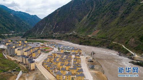 建造于怒江边的云南怒江傈僳族自治州泸水市大兴地镇维拉坝珠海社区(6月24日无人机拍摄)。