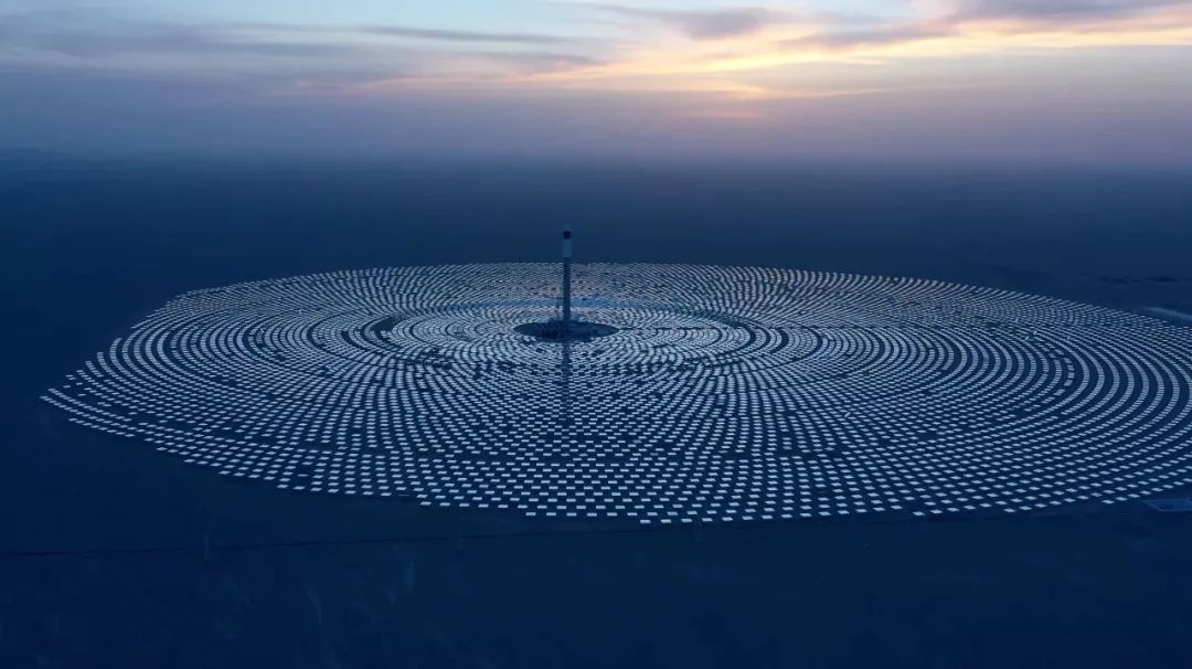 通过沈良的手机视频看到,在德令哈光热产业园区,有一个顶部像是一盏巨大耀眼聚光灯的集热塔最引人注目。它的排列并不是采集太阳能的光伏电板,而是用来反射阳光的玻璃镜面,这些面板也不全朝着一个方向围着太阳转,而是以不同的角度将阳光折射到集热塔。