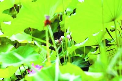 这株并蒂莲是圆明园管理处的工作人员上月底在长春园线法桥东水面首次发现的,不过有市民来拍并蒂莲时,却发现并蒂莲不见了,他在接受采访的视频中称,他听说并蒂莲有可能被游客摘走了。对此,圆明园管理处立即开展调查。经核实,并蒂莲仍在原处,并未“失踪”,只是并蒂莲与画面上的样子大不相同,粉色的花瓣已经凋落,花茎上已生长出了并蒂莲蓬。 李悦摄